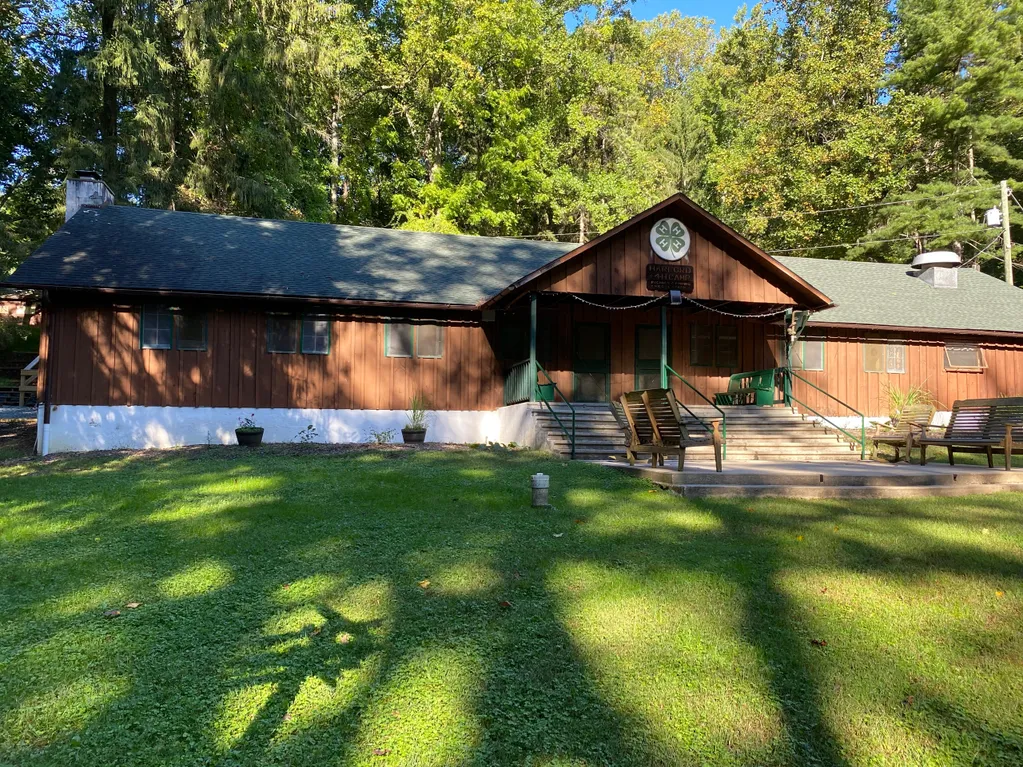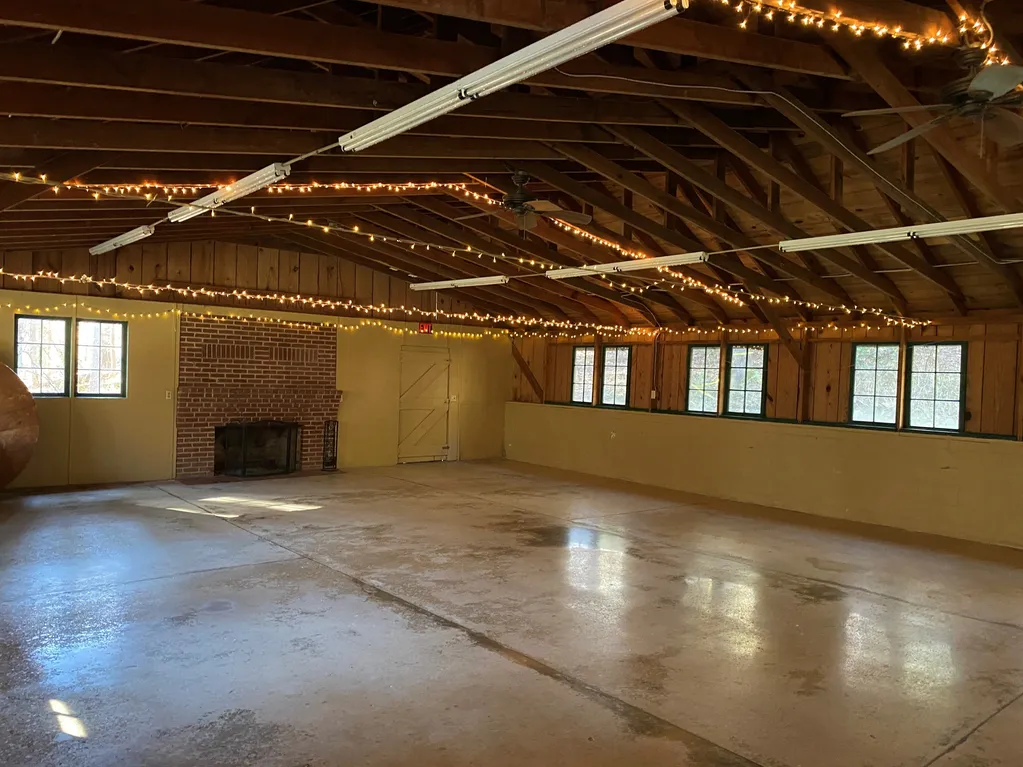 Includes a warming kitchen, Banquet Hall seating 125 guests and restrooms. This is a rustic indoor setting for groups.